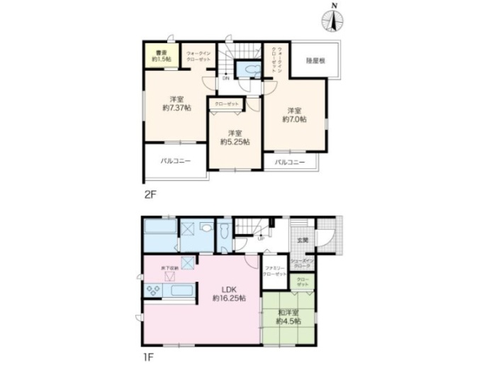 - 7.37洋・1.5書斎・5.25洋・7洋・WIC・トイレ・バルコニー